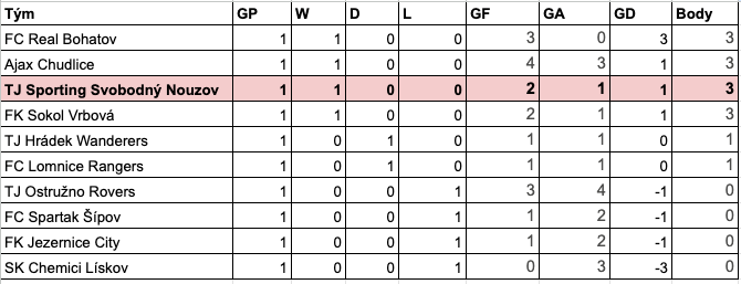 | TJ Sporting Nouzov | 2:1 | FK Jezernice City |